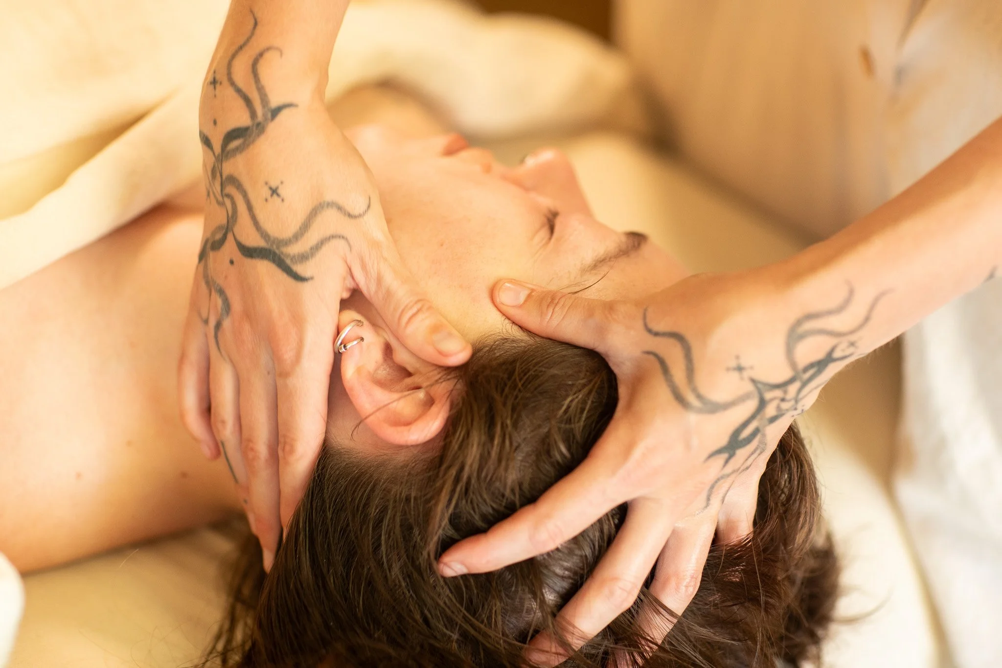 For clients looking to focus on relieving neck + head + face tension. This is supportive for people experiencing chronic anxiety, nervous system stimulation, headaches, migraines, jaw clenching, and/or TMJ syndrome. This session includes two skin cleansing processes, skin exfoliation, skin hydration, and intraoral massage